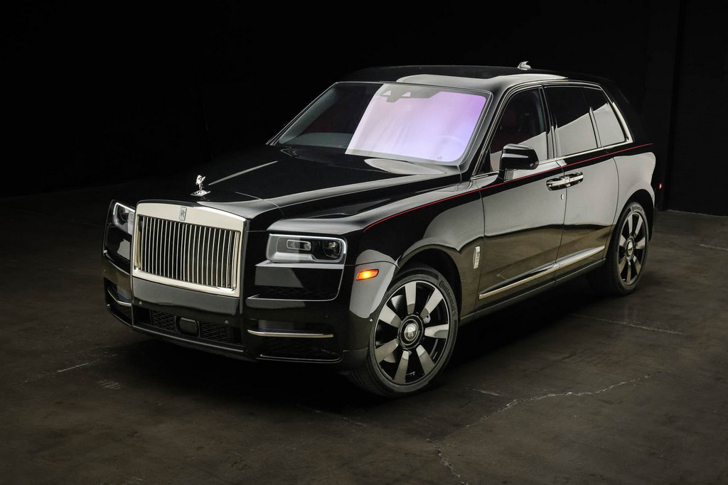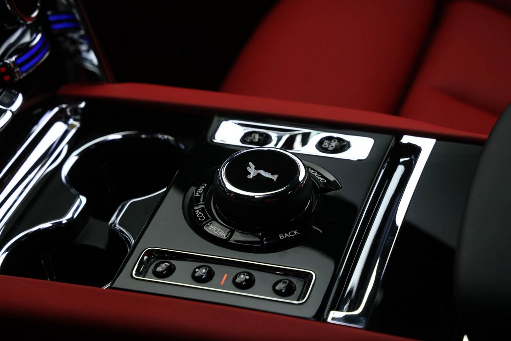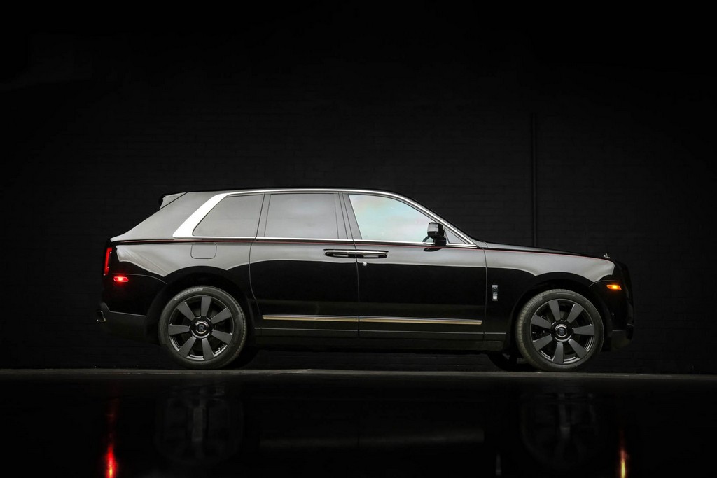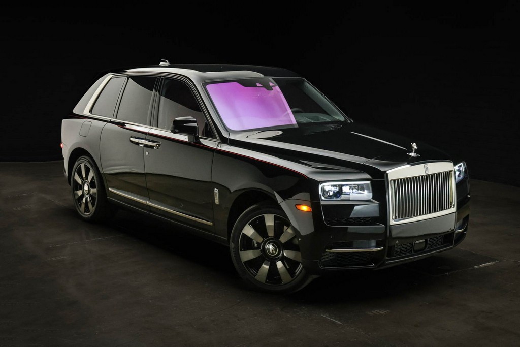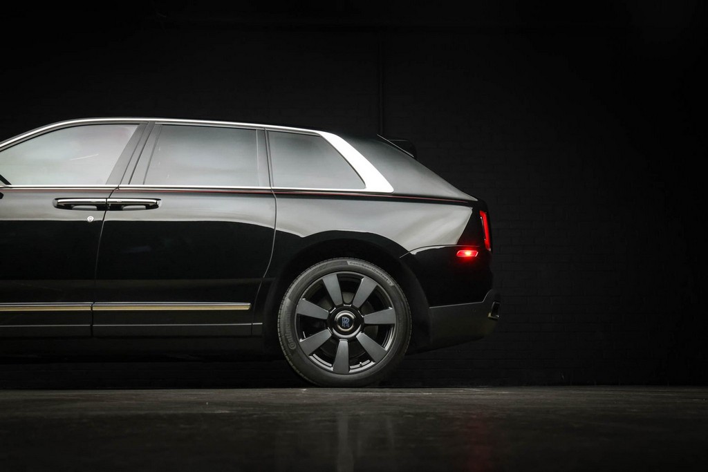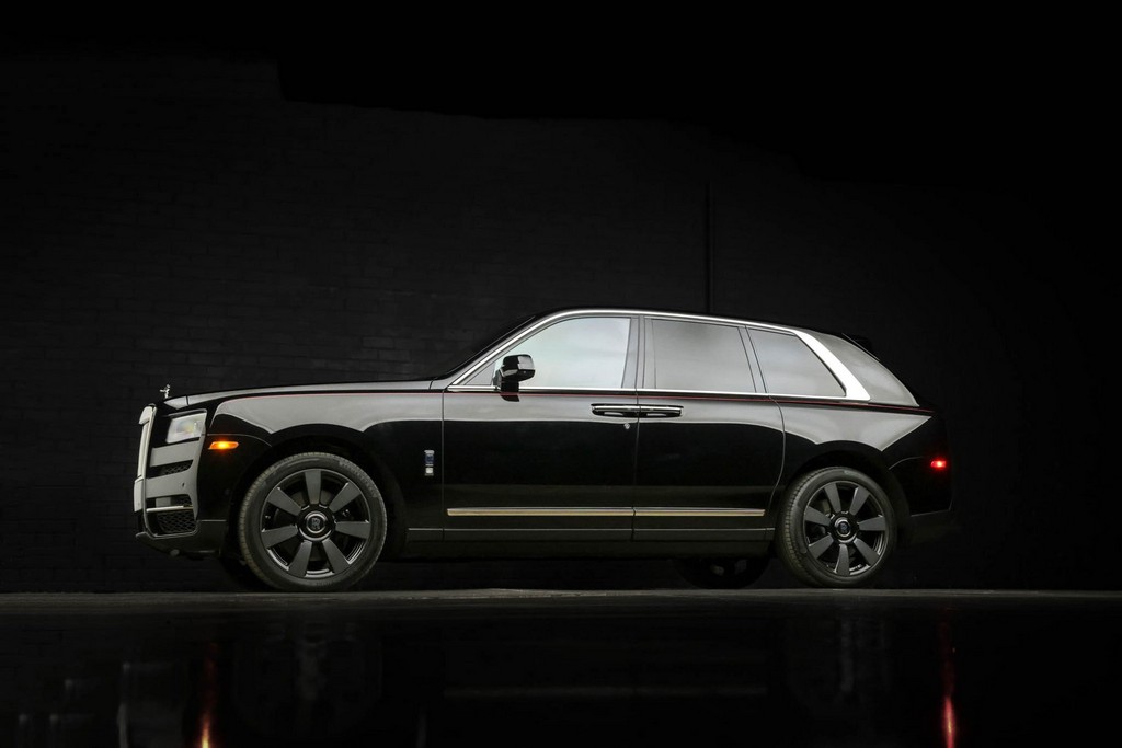 Equipment includes self-leveling air suspension, the Interior Detailing Package, Rolls-Royce laser headlights, and rear-hinged rear doors. The vehicle rides on 22″ seven-spoke Shadow wheels that complement its imposing silhouette.