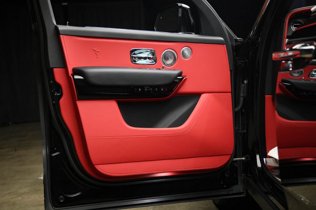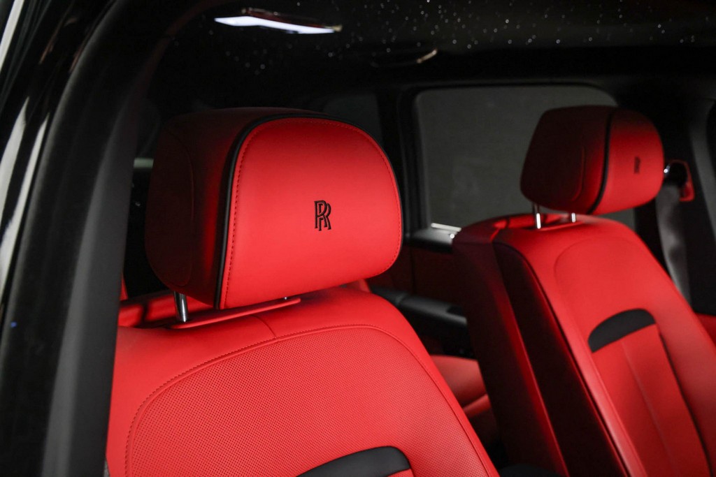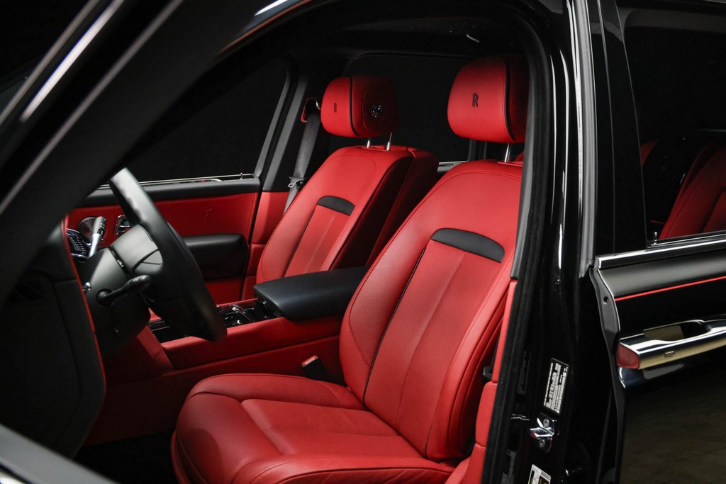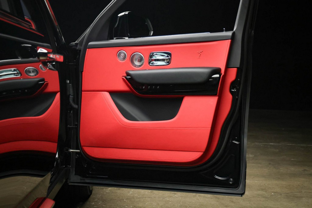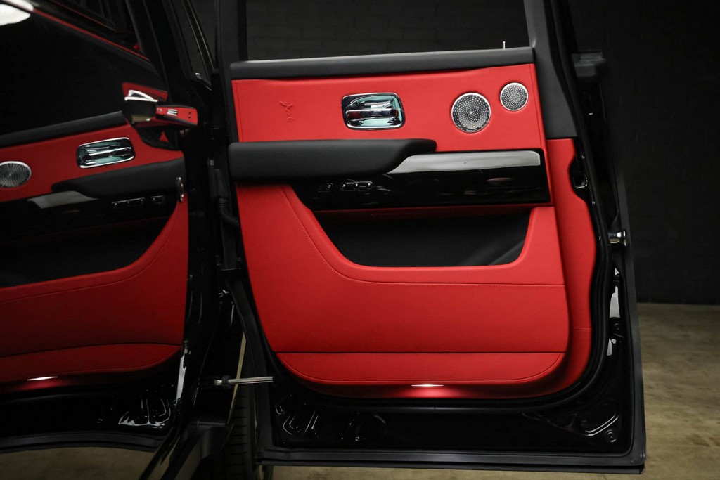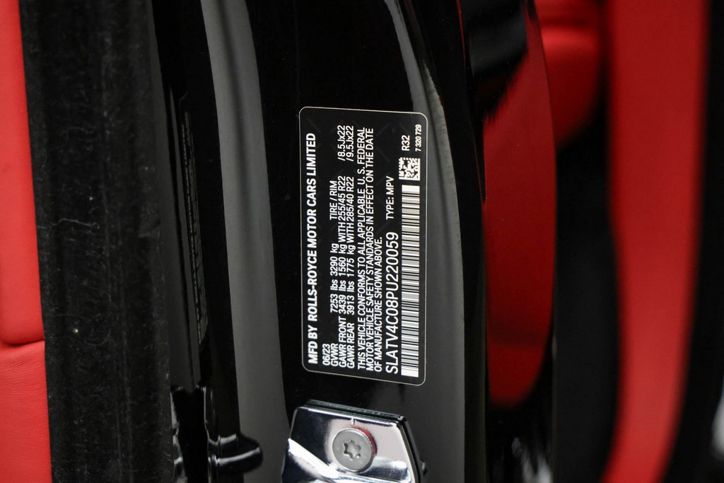 This 2023 Rolls-Royce Cullinan is powered by a twin-turbocharged 6.75-liter V12 mated to an eight-speed automatic transmission and an all-wheel-drive system, delivering the effortless power and refinement that define the marque. Finished in black over red leather upholstery, this ultra-luxury SUV pairs commanding presence with handcrafted interior elegance.