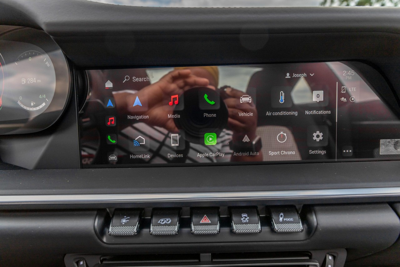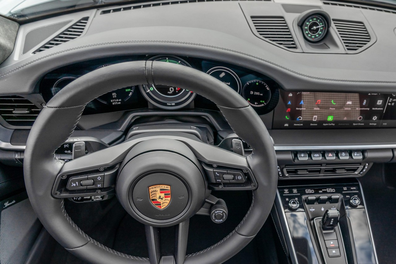 Power comes from a twin-turbocharged 3.7-liter flat-six engine paired with an eight-speed PDK dual-clutch automatic transaxle and Porsche’s advanced all-wheel-drive system. The result is instantaneous throttle response, seamless gear changes, and exceptional grip in all driving conditions. The Sport Chrono Package and sport exhaust system further enhance the driving experience, offering sharper dynamics and a more engaging exhaust note when desired.
