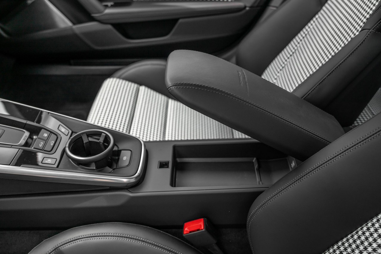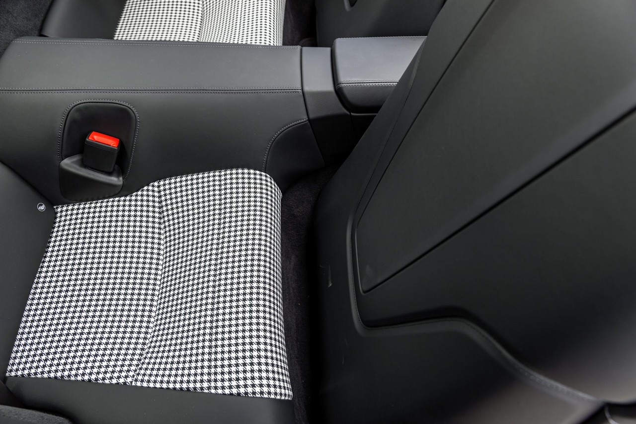 - Black Leather & Pepita Cloth Upholstery