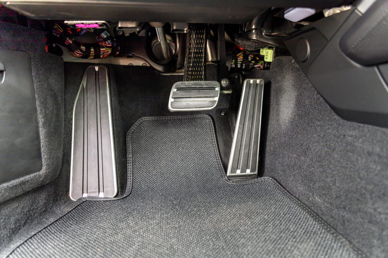 Finished in Ice Gray Metallic, the exterior is complemented by staggered 20-inch front and 21-inch rear Turbo S Exclusive Design alloy wheels. Braking performance is handled by Porsche Ceramic Composite Brakes with distinctive yellow calipers, providing fade-resistant stopping power. Additional performance and convenience features include the front-axle lift system for improved clearance and Power Steering Plus for enhanced maneuverability at lower speeds. LED-Matrix Design headlights with PDLS+ ensure outstanding visibility and a modern lighting signature.